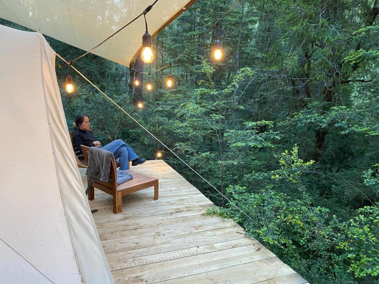 En Glamping Dos Rios, la clientela puede usar la terraza.